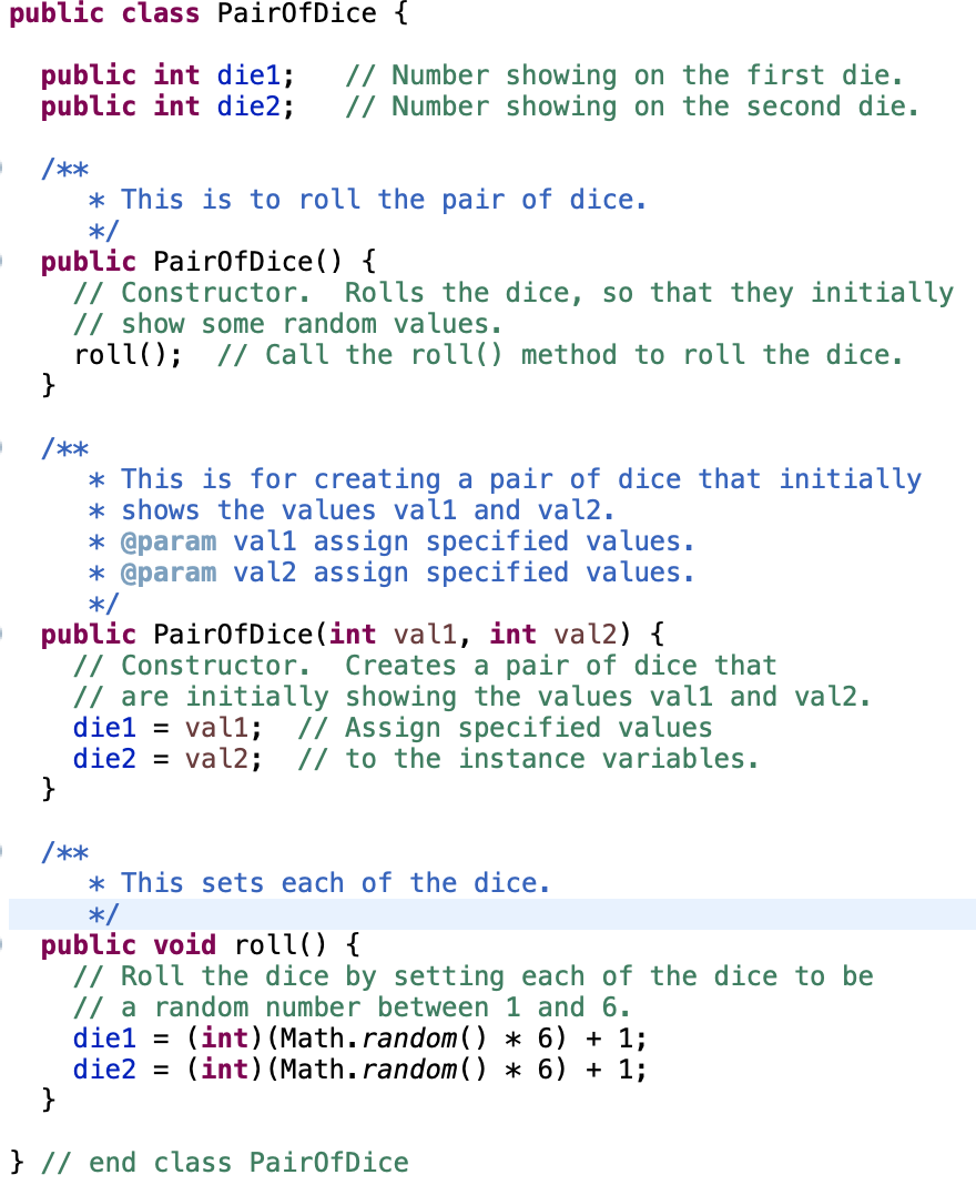 Die die2 new Die. True ply false comp. Int totalScores 0.